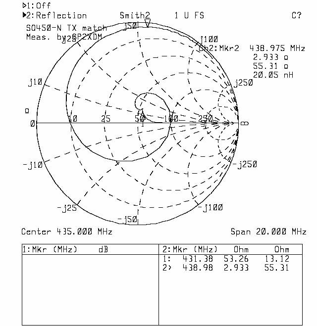 - Pierwsze pomiary wykonane analizatorem wektorowym wskazują, że duplekser został zestrojony przez sprzedawcę na zadane częstotliwości niezbyt starannie. Być może też rozstroił się przy transporcie. Zestrojenie części nadawczej jest prawidłowe, natomiast błąd częstotliwości toru odbiorczego wynosi +450kHz.