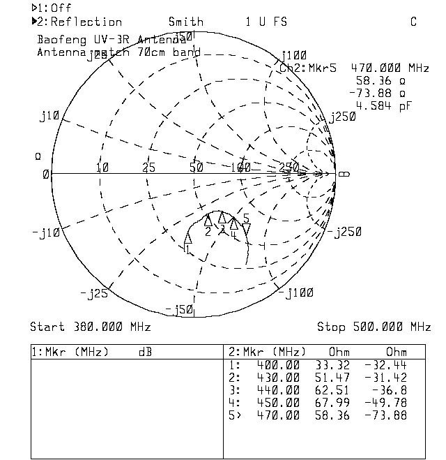 11. Jakość anteny dołączonej do zestawu. Antena została wykonana w modnym obecnie standardzie - ze złączem SMA, które obecnie wyparło już praktycznie dawniej powszechnie używane w radiotelefonach BNC. Obecnie na rynku jest bardzo wiele anten zamiennych - pytanie zatem, czy antenę od razu wymieniać na inną, czy pozostać przy fabrycznej. Przedmiotem pomiaru, ze względów laboratoryjnych, było tylko i wyłącznie dopasowanie anteny do nadajnika. Nie mam możliwości sprawdzenia jej skuteczności ani efektywności wypromieniowania mocy czy kształtu wiązki. Charakterystyki dopasowania w postaci wykresów SWR i wykresów Smitha znajdują muszą zatem jak na razie wystarczyć do jej oceny. Antena wykonana jest solidnie, zalana przyzwoitym i elastycznym (w pokojowych temperaturach) tworzywie. Gniazdo SMA wbrew pierwszemu wrażeniu nie jest ze stali nierdzewnej, lecz mosiężne chromowane.