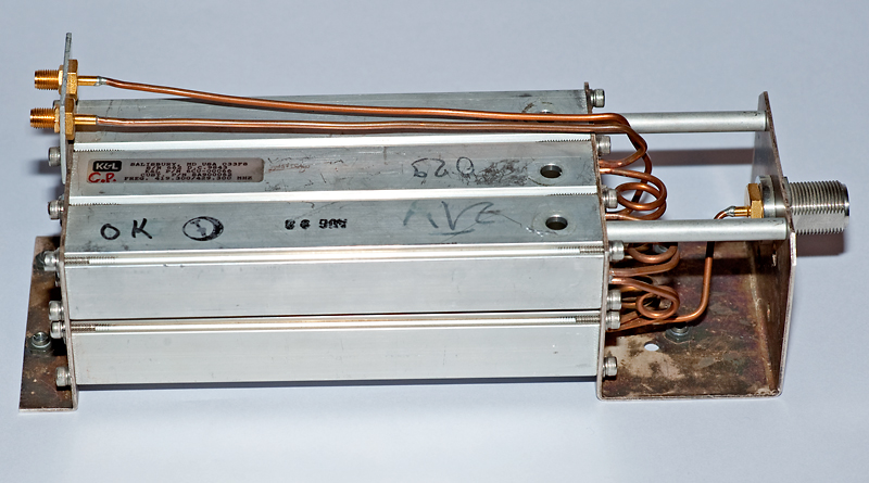 Na prośbę kolegów z SP5 podjąłem się zestrojenia dupleksera K&L 6CU-00066 z przeznaczeniem do zastosowania w przemienniku amatorskim 70cm. Filtr ten pod względem układowym jest tożsamy z filtrami K&L 6CU-00003, które stroiłem wcześniej, różni się jednakże sposobem montażu obwodów i zastosowanymi złączami. W odróżnieniu od pozostałych filtrów, w których wszystkie sześć obwodów leżą w jednej płaszczyźnie zastosowano układ 2x3 obwody w układzie jeden nad drugim.