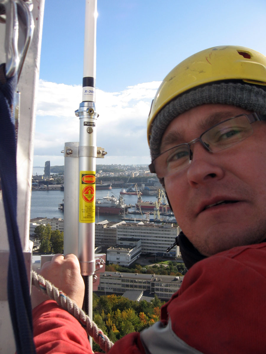 Z przyjemnością informuję, że po długotrwałych staraniach, w niedzielę 7 października 2012, udało się nam uruchomić przemiennik SR2SB z nowej lokalizacji w Radiokomunikacyjnym Centrum Nadawczym TP EMITEL Gdynia/Oksywie. Wczorajsze prace obejmowały montaż anteny X-300, wykonanie przyłącza i wyposażenie szafy w aparaturę. W ramach wcześniejszych przygotowań zamontowaliśmy kabel 7/8", wspornik antenowy oraz szafę, wykonaliśmy przyłącze elektryczne i zamontowaliśmy pozostały osprzęt - uziemiacze, odgromniki itp..