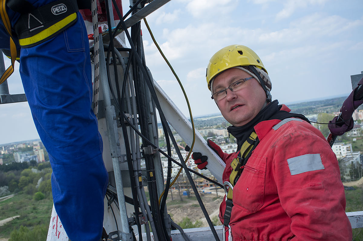 Prace, trwające ponad 9 godzin nie były wynikiem samego dążenia do poprawy zasięgów. Głównym powodem ich wykonania była przebudowa profesjonalnej instalacji na kanały morskie, która odbyła się w ubiegłym roku, a której skutkiem było zamontowanie zespołu anten na kanały morskie bardzo blisko naszej anteny. Powodowało to odkształcenie charakterystyki naszej anteny i zdecydowanie podnosiło poziom zakłóceń. Na obecnej wysokości znajdujemy się jedynie w sąsiedztwie anten DVB-T, emitujących na częstotliwości 690MHz. Podniesienie anteny wymagało zmiany sposobu jej mocowania, przedłużenia toru kablowego o ok 20m, wykonania dwóch muf i innych prac dodatkowych. Wszystkie prace wykonaliśmy własnymi siłami i ze środków własnych w składzie: Maciej SP2GPU, Daniel SQ4AFR, Jędrzej SQ2DK i Michał SP2XDM.
