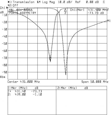 Przy okazji prośba do kolegów, którzy chcą, abym pomógł w strojeniu filtrów - jeśli nie macie możliwości lub nie wiecie jak - nie przestrajajcie "na oko" fabrycznie zestrojonych obwodów. Jeśli otrzymam do przestrojenia filtr w stanie oryginalnym mogę sprawdzić jego charakterystykę - zatem wiem jakich rezultatów się mam spodziewać, wiem na jaki odstęp dupleksowy został wykonany i jakie tłumienia udaje się uzyskać. - można wiec uzyskać dobre efekty w krótkim czasie i zestroić filtr według założeń producenta. Strojenie kompletnie rozregulowanego filtra 6 obwodowego, w którym w dodatku zmieniono sprzężenia, o zupełnie nieznanych parametrach jest bardzo czasochłonne i trudne do zoptymalizowania.