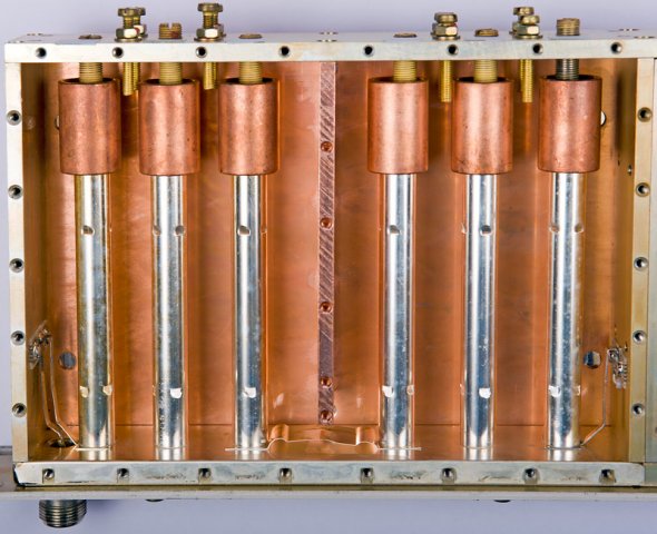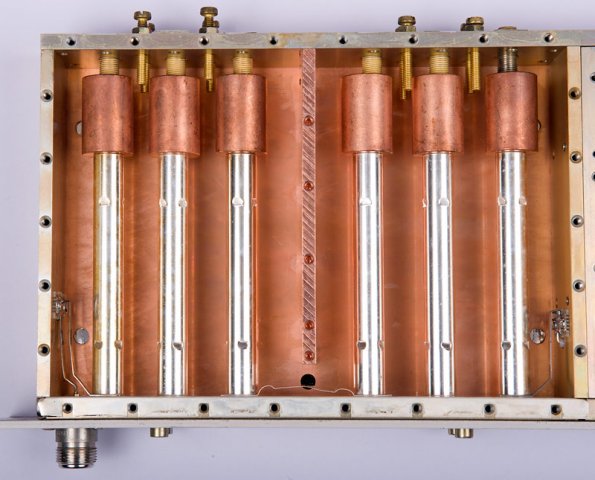 - Rama filtra jest wykonana z relatywnie taniego aluminium, ale pokrywy komór są miedziane a podstawa rezonatorów wyłożona cieniutką srebrzoną blaszką, której krawędzie są wywinięte na aluminiową ramę montażową w miejscu przykręcenia miedzianych pokryw. Oznacza to, że zachowano niezwykle małą oporność powierzchniową i niską impedancję styku stosując drogie materiały tylko tam, gdzie ma to znaczenie.