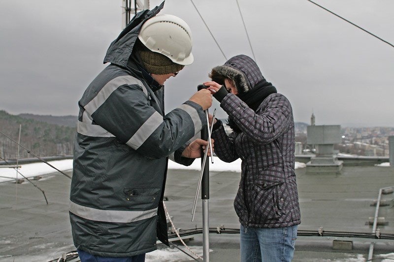 12 grudnia 2010, w dośc niesprzyjających warunkach pogodowych (ok 0°, deszcz, silny wiatr, śnieg zalegający na dachu) kilku członków klubu SP2ZIE poszło wymienniac anteny. Zdemontowaliśmy zestaw anten cross-yagi na 2m i 70cm, zestaw przełączników polaryzacji (Wi-Mo) oraz rotor azymutalno-elewacyjny. W miejsce tego zamontowaliśmy antenę do odbioru satelitów (m. in. NOAA) oraz popularną "radmorowską pałę".