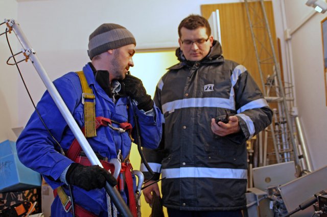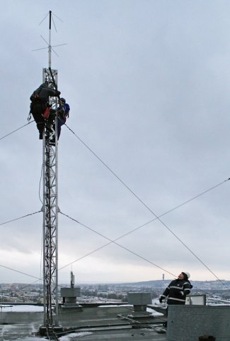 12 grudnia 2010, w dośc niesprzyjających warunkach pogodowych (ok 0°, deszcz, silny wiatr, śnieg zalegający na dachu) kilku członków klubu SP2ZIE poszło wymienniac anteny. Zdemontowaliśmy zestaw anten cross-yagi na 2m i 70cm, zestaw przełączników polaryzacji (Wi-Mo) oraz rotor azymutalno-elewacyjny. W miejsce tego zamontowaliśmy antenę do odbioru satelitów (m. in. NOAA) oraz popularną "radmorowską pałę".