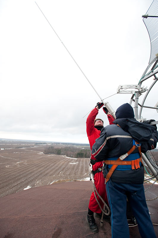 Zdjęcia radioamatorskie - Montaż przemiennika SR2GN na wieży w Gniewinie