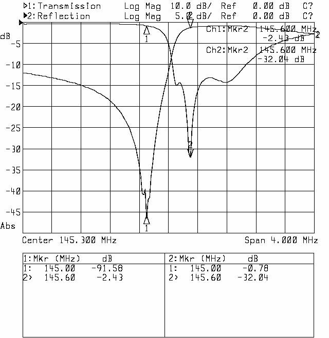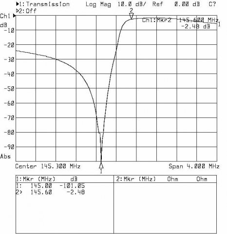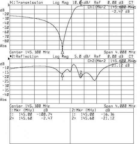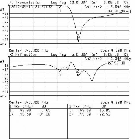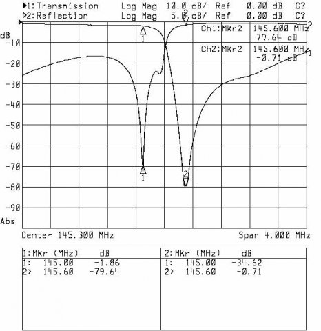 Co prawda rury od strony odbiornika wymagają poprawek mechanicznych, ale to co udało się uzyskać zaczyna mnie cieszyć. W końcu pułapki mają wystarczającą głębokość, a odstęp dupleksowy jest zachowany. Jedyne co nie podoba mi się zbytnio to dopasowanie na porcie antenowym (punkcie połączenia gałęzi filtra) - trudne do poprawienia.