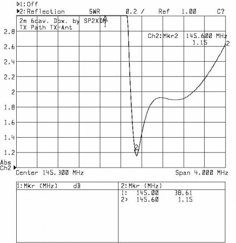 Wyniki uznaję za satysfakcjonujące, jako że wykonany całkowicie własnymi siłami duplekser odbiega od rozwiązań komercyjnych tylko wartością jednego parametru - tłumienia w paśmie przepustowym. Liczyłem się z tym, że przy mniejszych wymiarach (średnica mniejsza o 25% , długość mniejsza o 8cm, ze względu na skrócenie relatywnie dużą pojemnością) oraz nie stosując lutów srebrnych nie uzyskam -1,5dB.