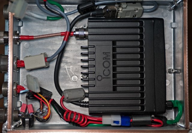 W jednej obudowie znajduje się radiotelefon odbiorczy i mikrokontroler zbudowany w oparciu o mikroprocesor ATMEGA32. W drugiej obudowie znajduje się zasilacz, radiotelefon nadawczy, filtry zasilania oraz termostaty odpowiedzialne za załączanie wentylatorów.