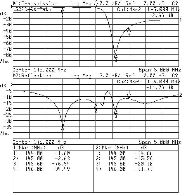 - filtr pasmowo-przepustowy w torze odbiornika, zapewniający tłumienie powyżej 86dB częstotliwości leżących w pasmach radiodyfuzyjnych (88-108MHz) i 81dB dla częstotliwości kanałów telewizyjnych UHF (powyżej 220MHz),