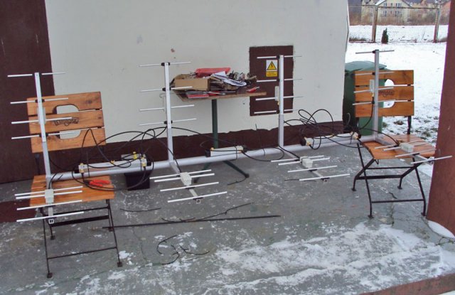 SR2GA - Prowizoryczny montaż synfazowego układu anten Yagi na dachu klubu SP2YWL