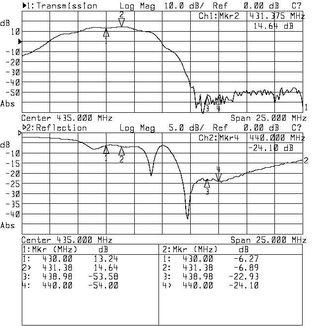 Dzięki mniejszemu tłumieniu w paśmie przepustowym (~0,9dB), a także większemu tłumieniu częstotliwości nadajnika na wejściu odbiornika udało się zwiększyć czułość, obniżyć próg otwarcia i zwiększyć moc wyjściową. Parametry nowego dupleksera uzyskane w wyniku pomiarów analizatorem sieci Agilent E5071C możecie odczytać z charakterystyk wektorowych.