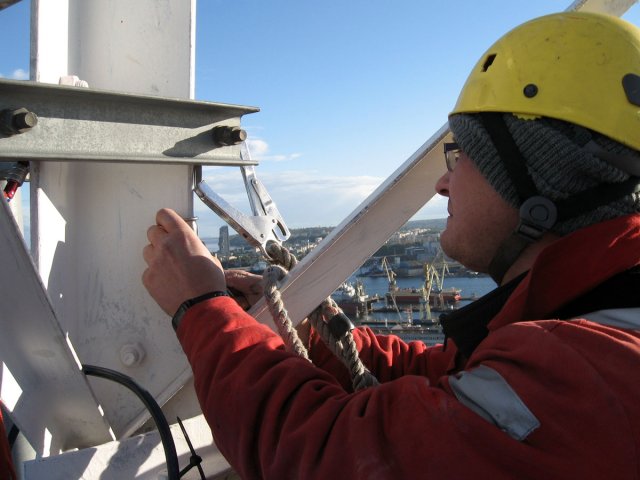 Z przyjemnością informuję, że po długotrwałych staraniach, w niedzielę 7 października 2012, udało się nam uruchomić przemiennik SR2SB z nowej lokalizacji w Radiokomunikacyjnym Centrum Nadawczym TP EMITEL Gdynia/Oksywie. Wczorajsze prace obejmowały montaż anteny X-300, wykonanie przyłącza i wyposażenie szafy w aparaturę. W ramach wcześniejszych przygotowań zamontowaliśmy kabel 7/8", wspornik antenowy oraz szafę, wykonaliśmy przyłącze elektryczne i zamontowaliśmy pozostały osprzęt - uziemiacze, odgromniki itp..