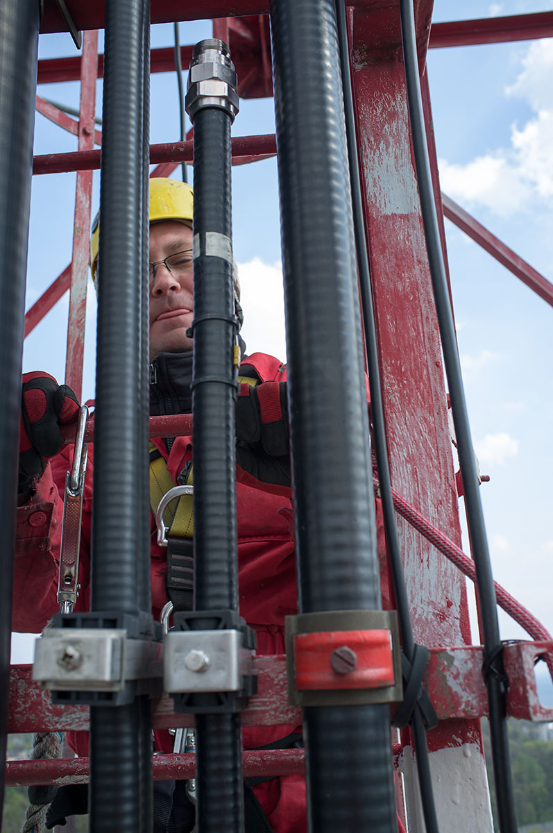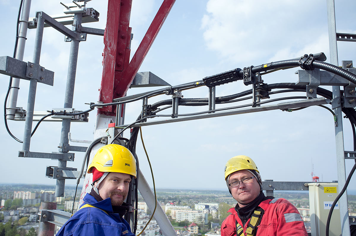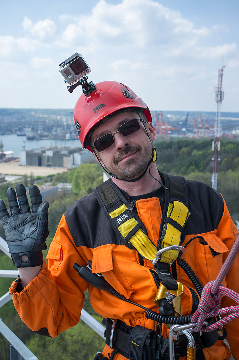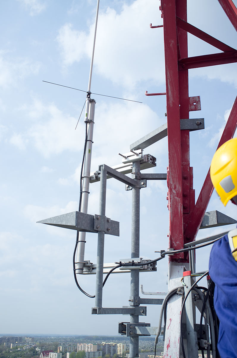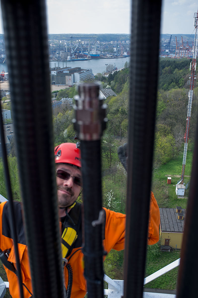 Prace, trwające ponad 9 godzin nie były wynikiem samego dążenia do poprawy zasięgów. Głównym powodem ich wykonania była przebudowa profesjonalnej instalacji na kanały morskie, która odbyła się w ubiegłym roku, a której skutkiem było zamontowanie zespołu anten na kanały morskie bardzo blisko naszej anteny. Powodowało to odkształcenie charakterystyki naszej anteny i zdecydowanie podnosiło poziom zakłóceń. Na obecnej wysokości znajdujemy się jedynie w sąsiedztwie anten DVB-T, emitujących na częstotliwości 690MHz. Podniesienie anteny wymagało zmiany sposobu jej mocowania, przedłużenia toru kablowego o ok 20m, wykonania dwóch muf i innych prac dodatkowych. Wszystkie prace wykonaliśmy własnymi siłami i ze środków własnych w składzie: Maciej SP2GPU, Daniel SQ4AFR, Jędrzej SQ2DK i Michał SP2XDM.