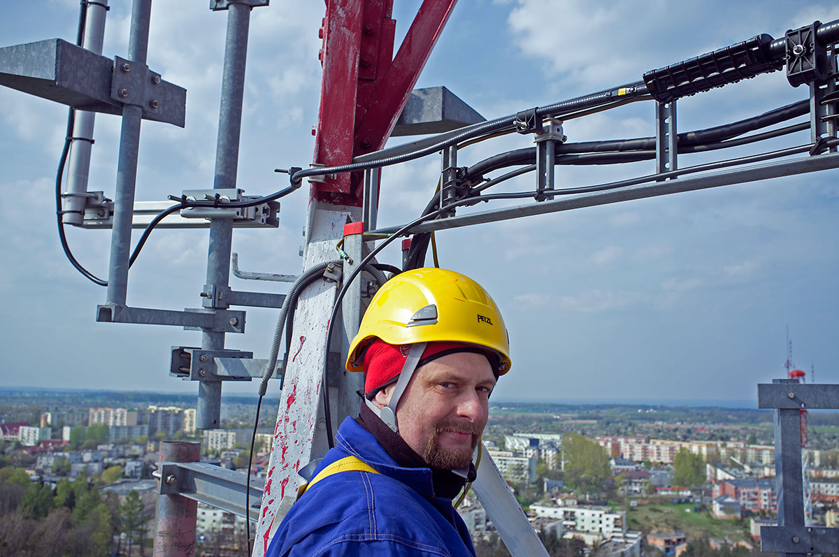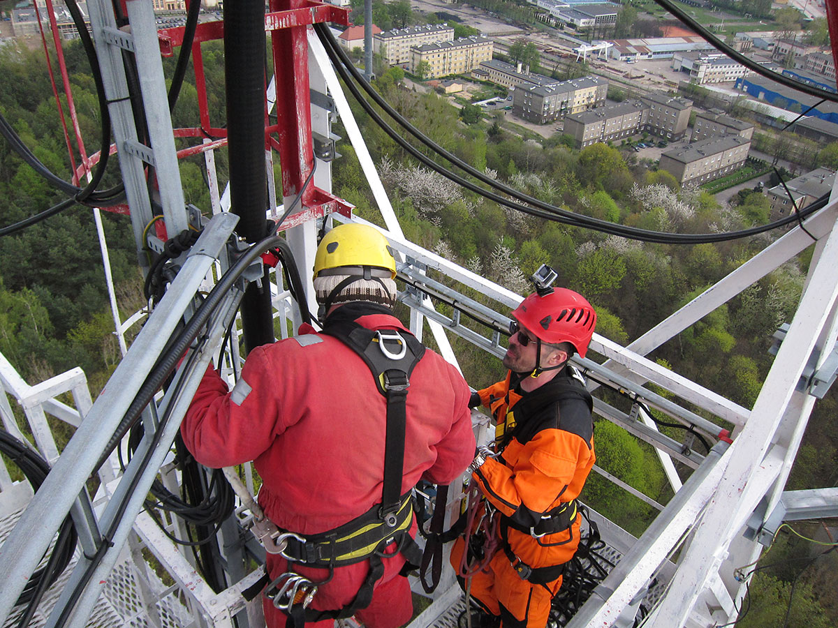 Podniesienie anteny przemienników SR2Z i SR2SB na wieży w Gdyni Oksywiu